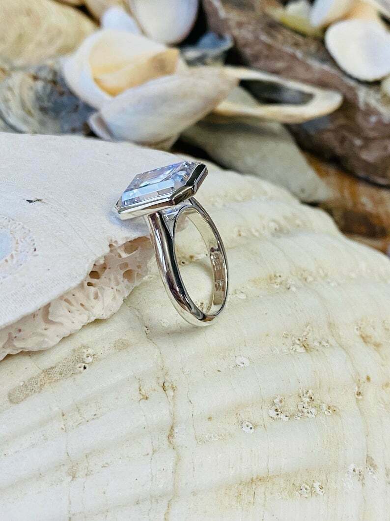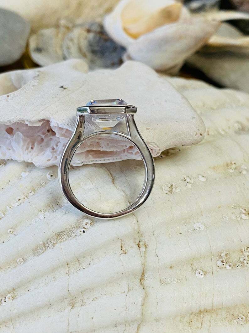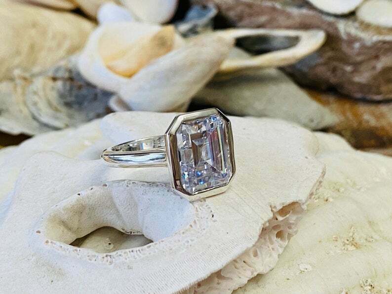 2.7ct Engagement Ring Emerald Cut Diamond Bezel Set Solitaire 14k WhiteGold Over