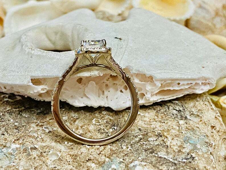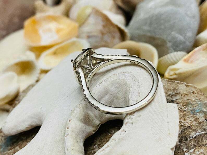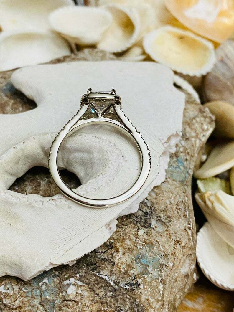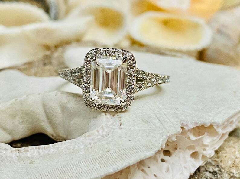 2.7ct Engagement Ring Emerald Cut Diamond Split Shank Halo 14k White Gold Finish