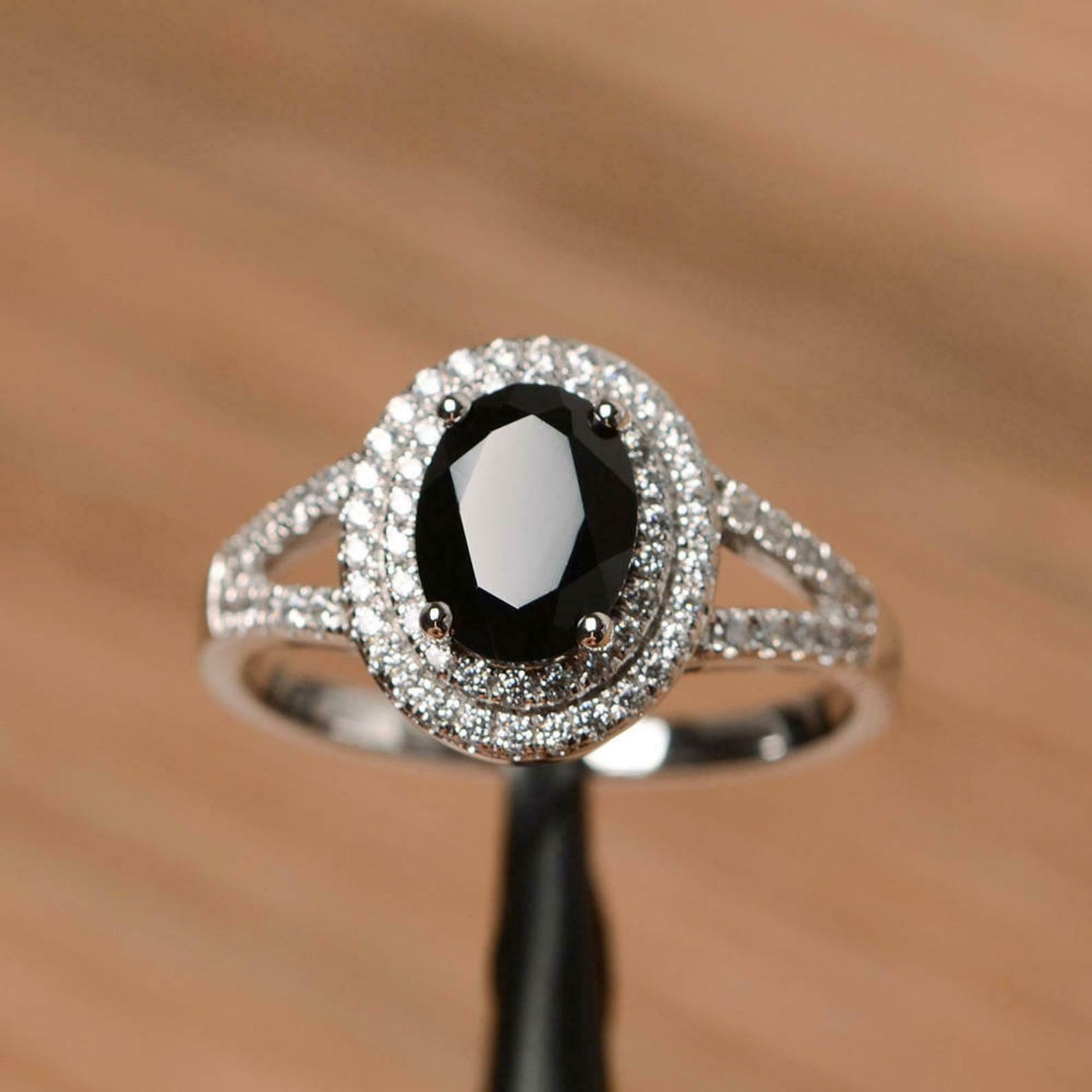 2.7ct Engagement Ring Oval Cut Black Diamond Dual Halo 14k White Gold Finish