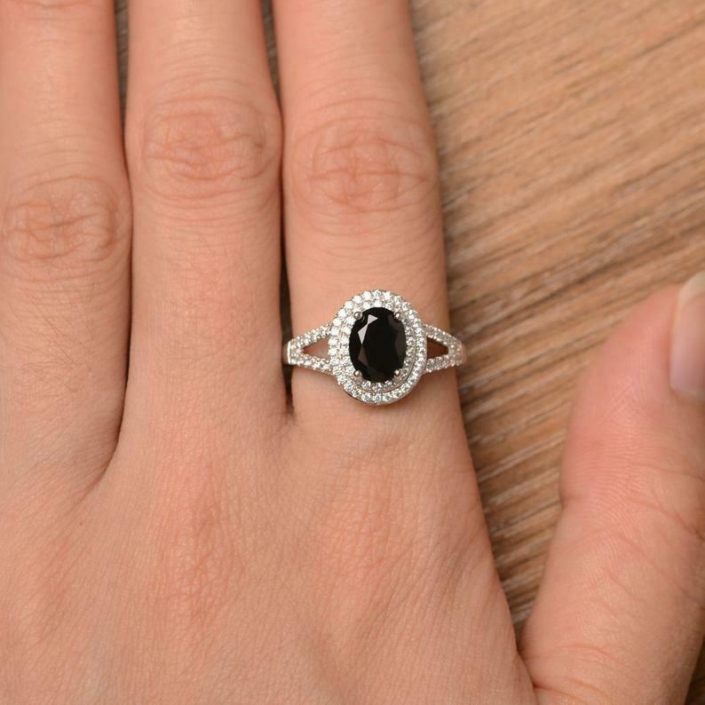 2.7ct Engagement Ring Oval Cut Black Diamond Split Shank Dual Halo 14k White Gold Finish