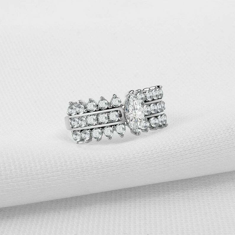 2.7ct Marquise Cut Diamond Engagement Ring 3 Row Accent Solitaire 14k White Gold Over