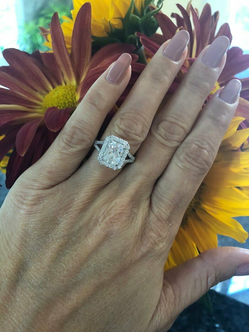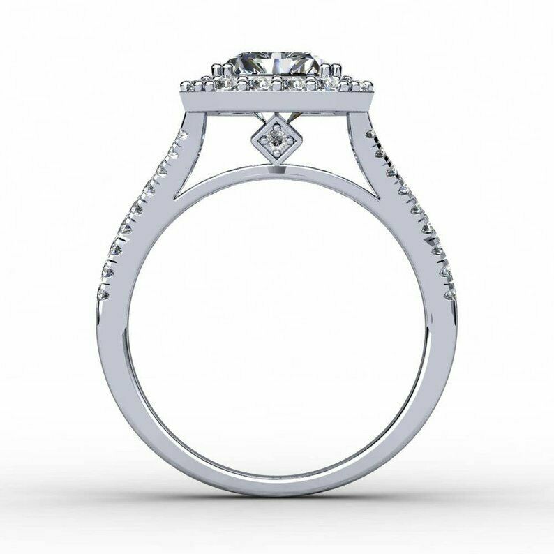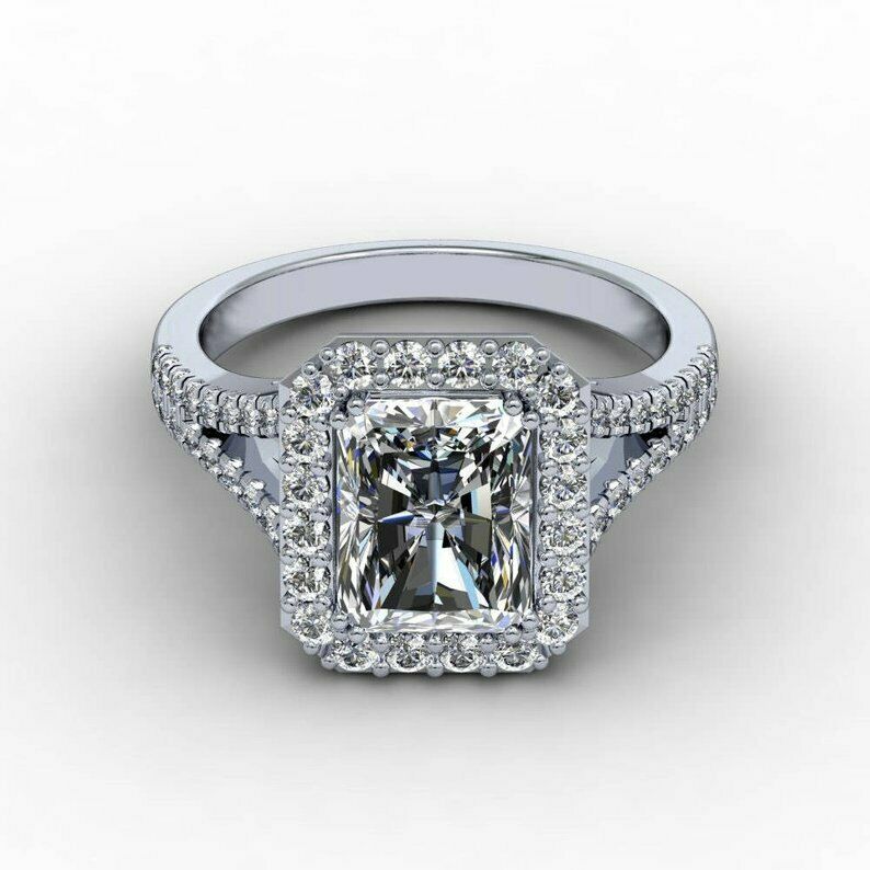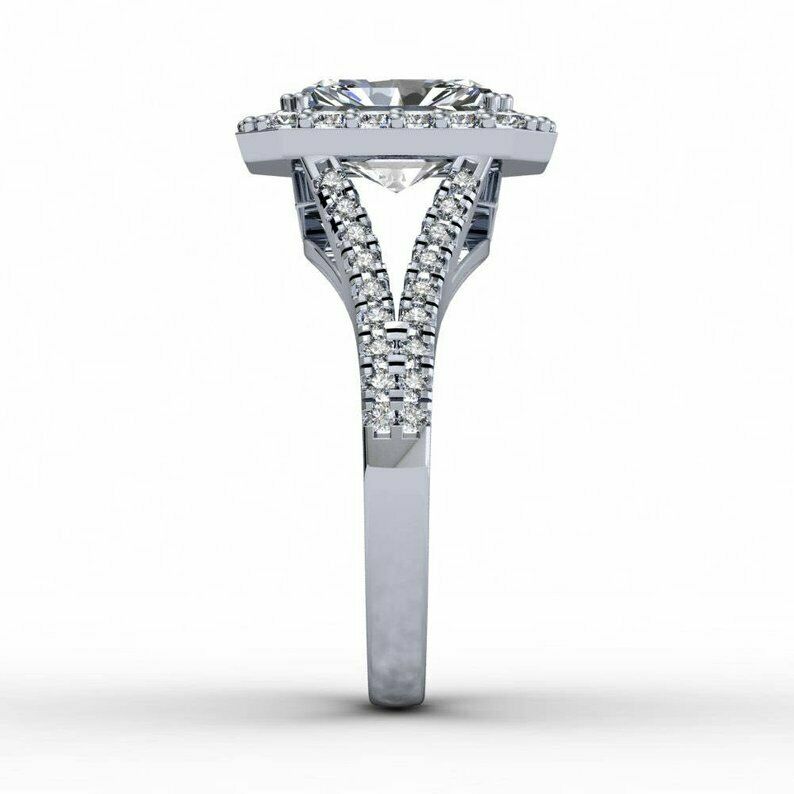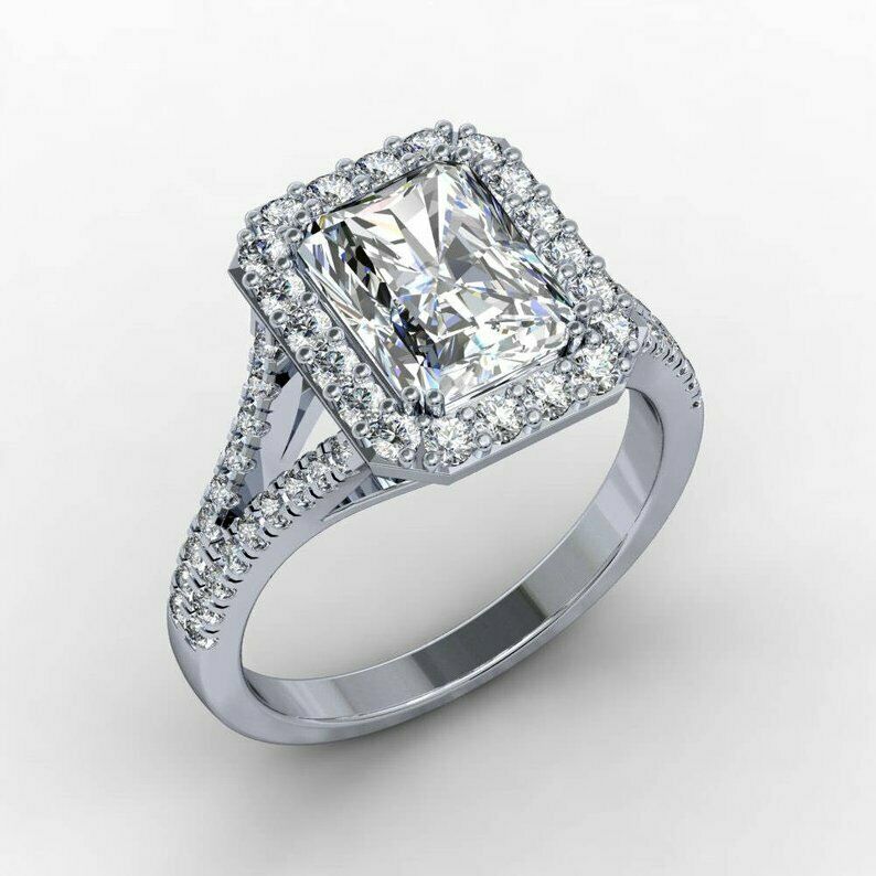 2.7ct Radiant Cut Diamond Engagement Ring Halo Split Shank 14k White Gold Finish