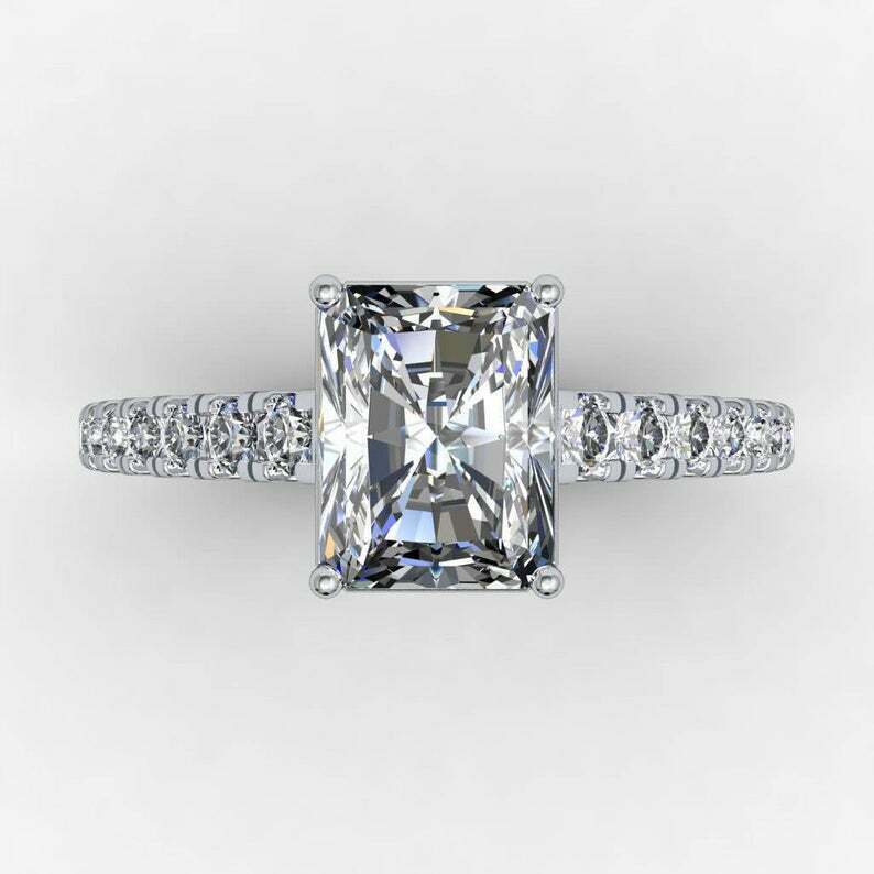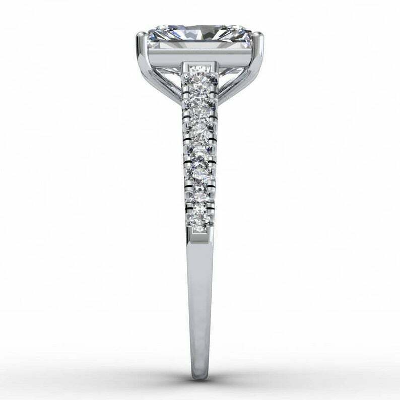 2.7ct Radiant Diamond Round Accent Solitaire Engagement Ring 14k White Gold Over