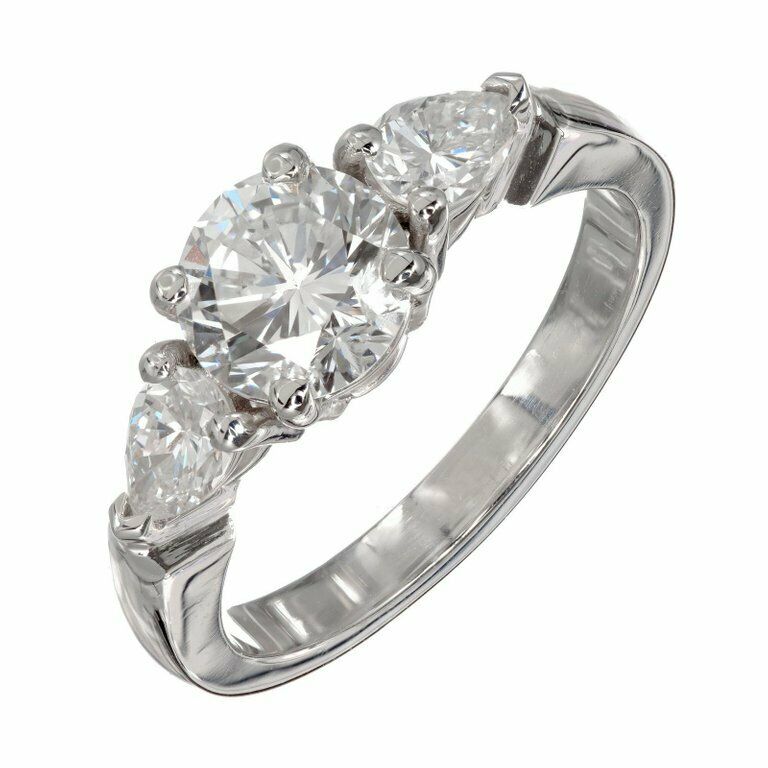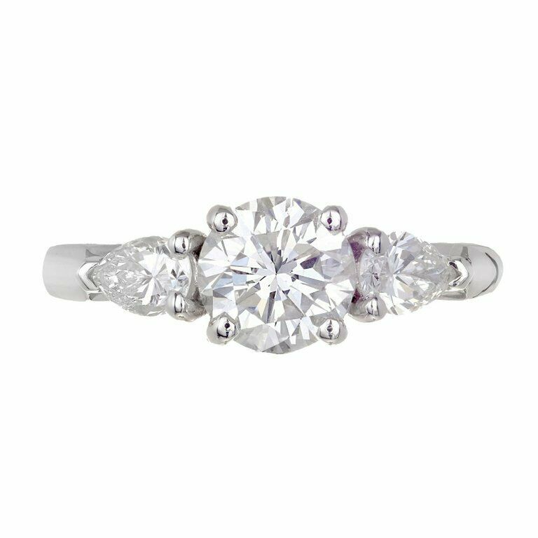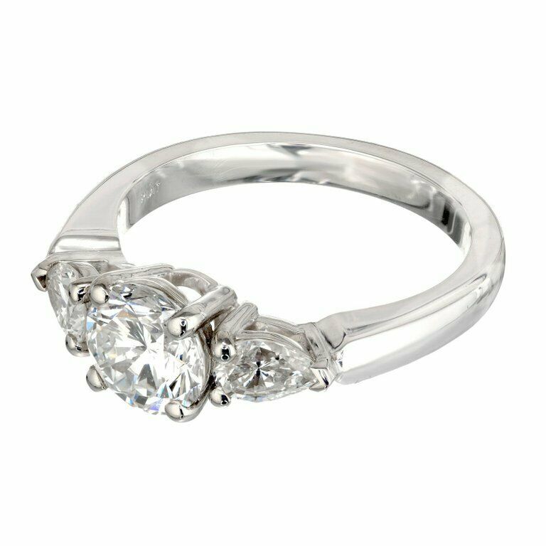 2.7ct Round Cut Diamond Pear Accents Engagement Trilogy Ring 14k White Gold Over