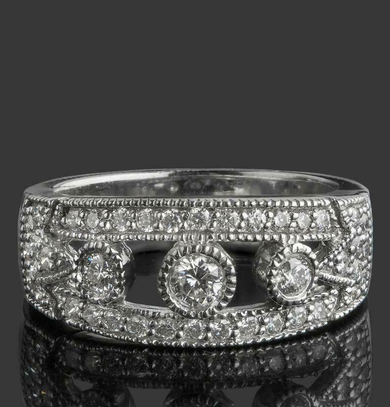 2.7ct Round Cut Diamond Wedding Band Wide Vintage Inspired 14k White Gold Finish