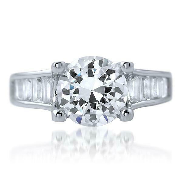2.85ct Round Cut Diamond Engagement Ring Baguette Accents 14k White Gold Finish