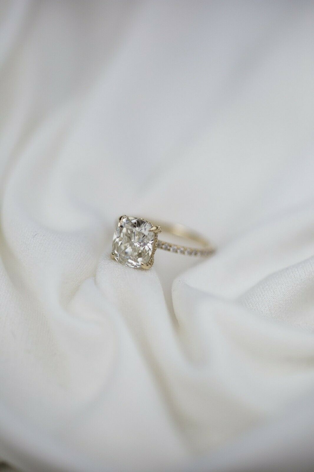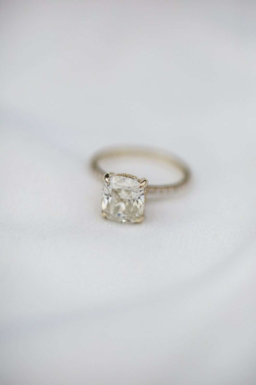 2.8ct Cushion Cut Diamond Solitaire with Accents Engagement Ring 14k Yellow Gold Finish