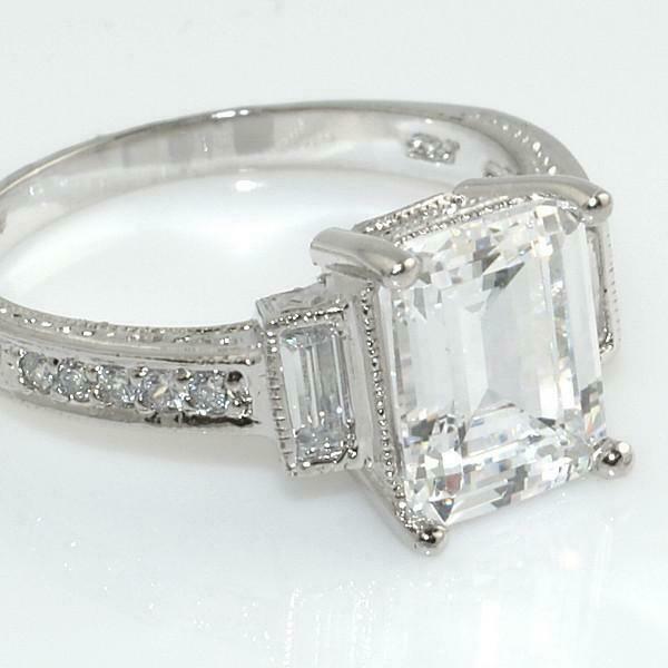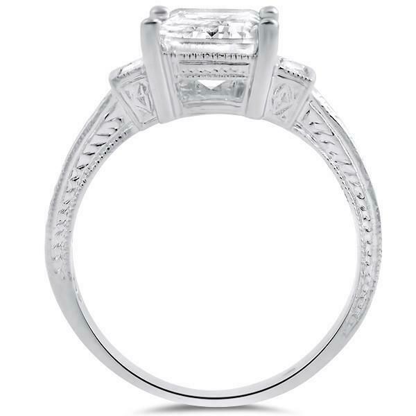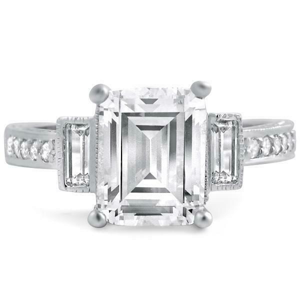 2.8ct Emerald Cut Diamond Engagement Ring Unique Trilogy 14k White Gold Finish
