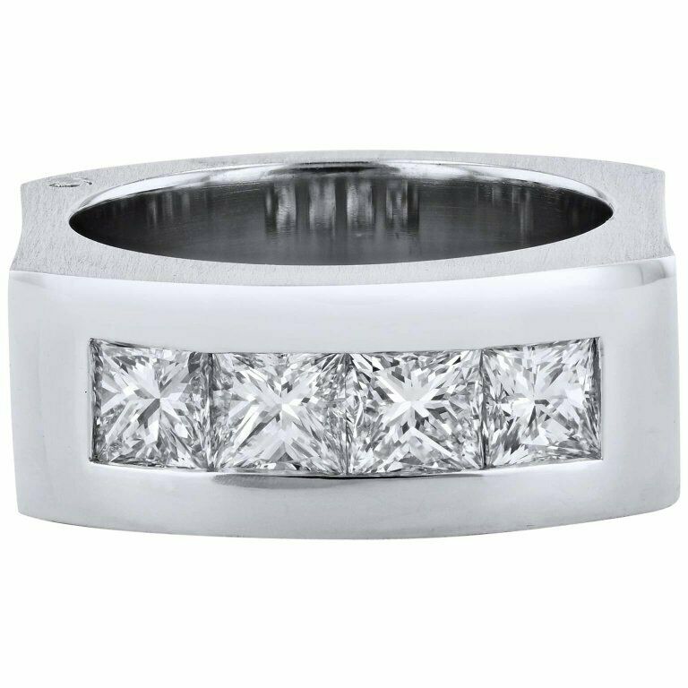 2.8ct Princess Cut Diamond Channel Set Men Engagement Ring 14k White Gold Finish