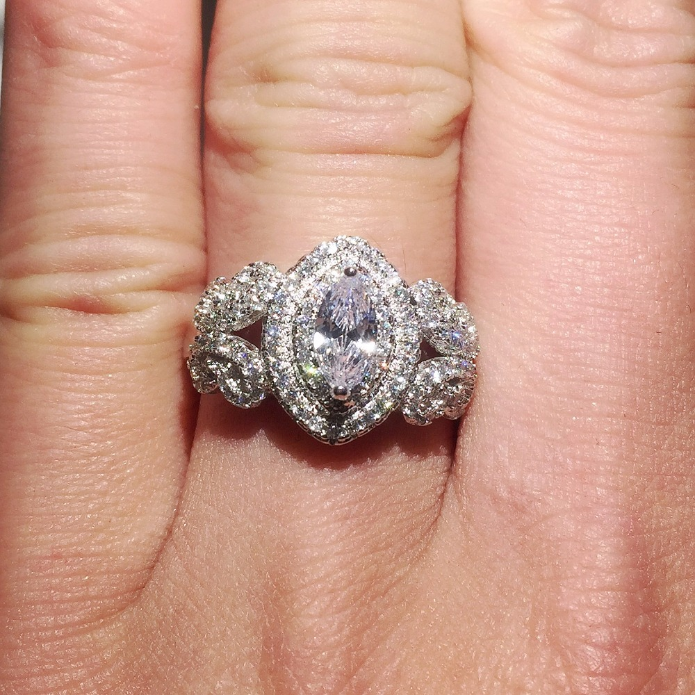 2.9ct Marquise Cut Diamond Engagement Ring 14k White Gold Finish Halo Cluster