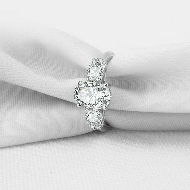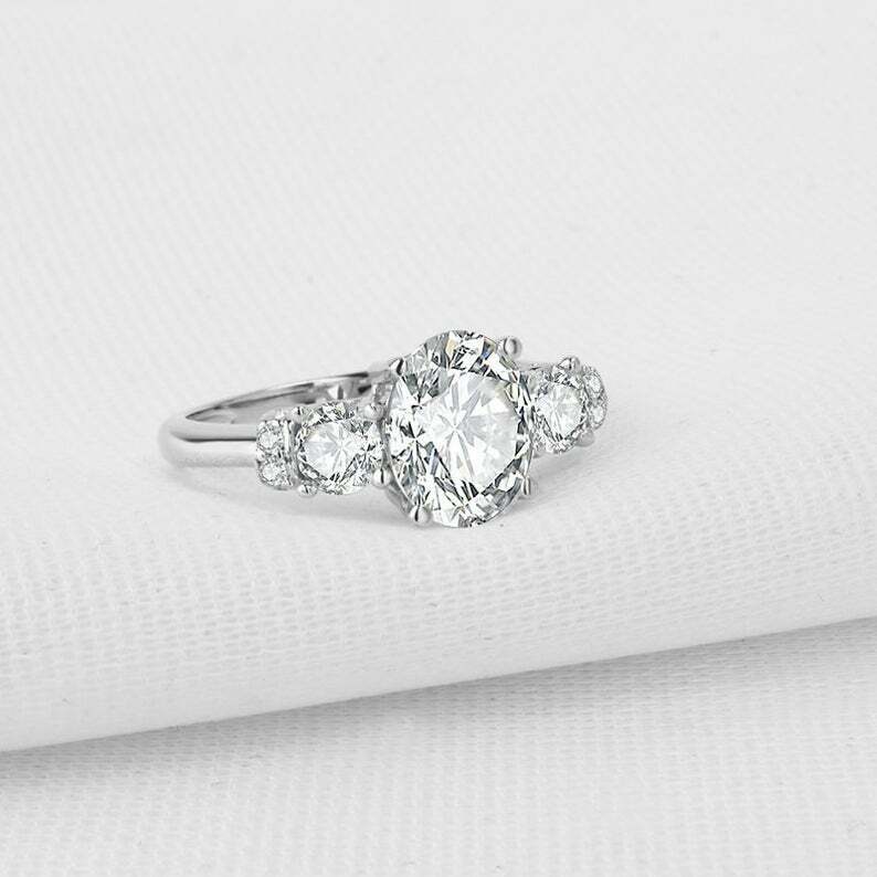 2.9ct Oval Cut Diamond Engagement Ring Trilogy Solitaire 14k White Gold Finish