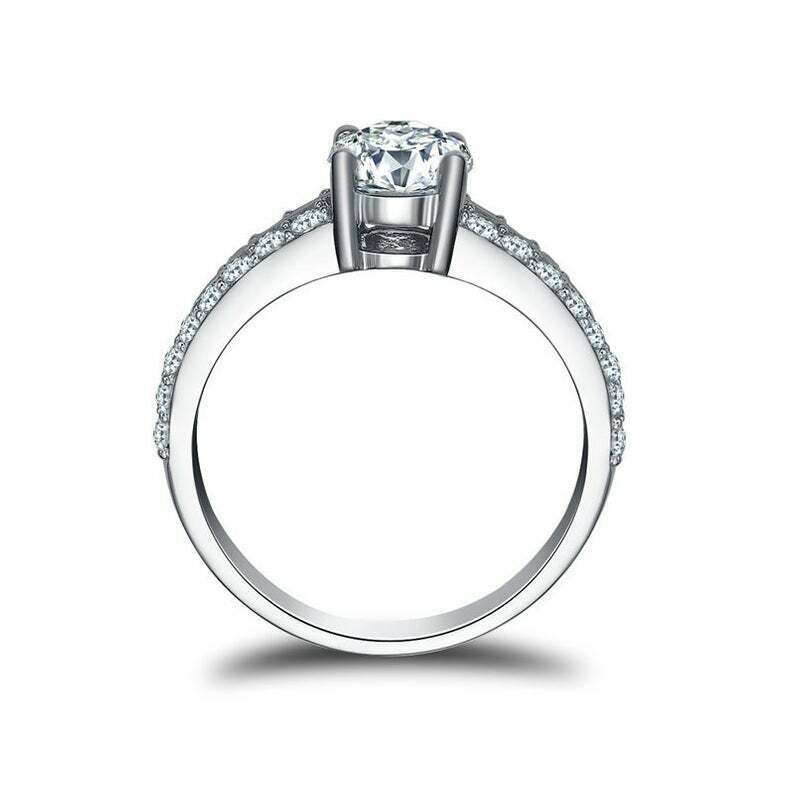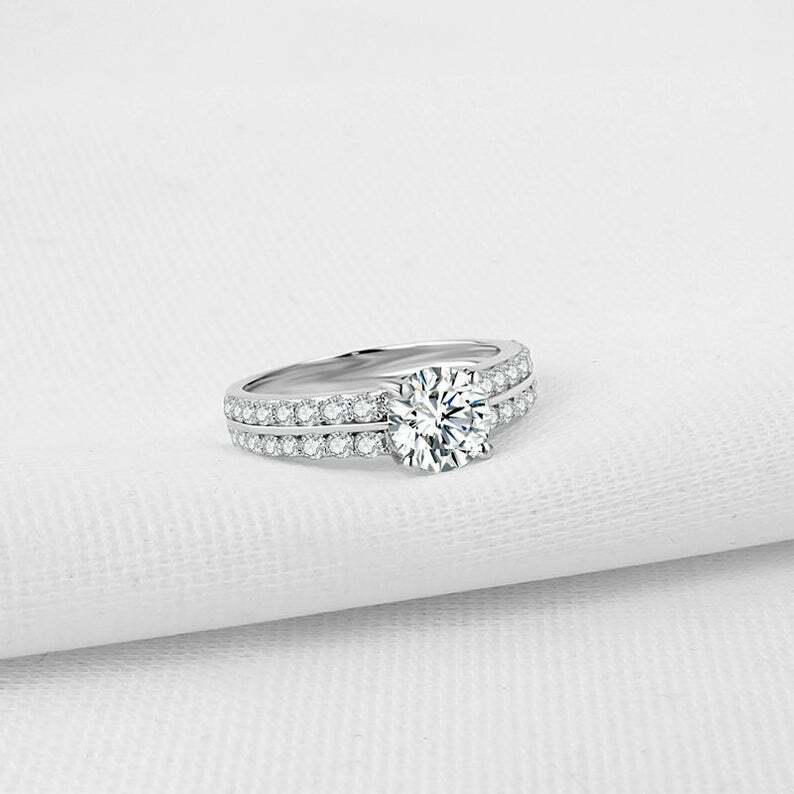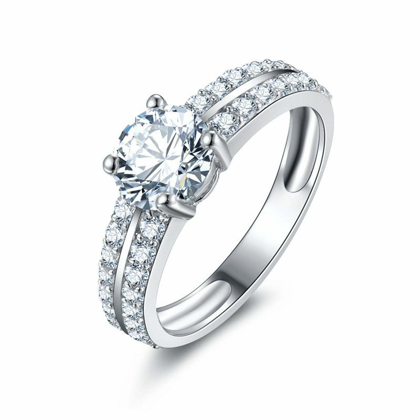 2.9ct Round Cut Diamond Dual Row Split Band Solitaire Ring 14k White Gold Finish