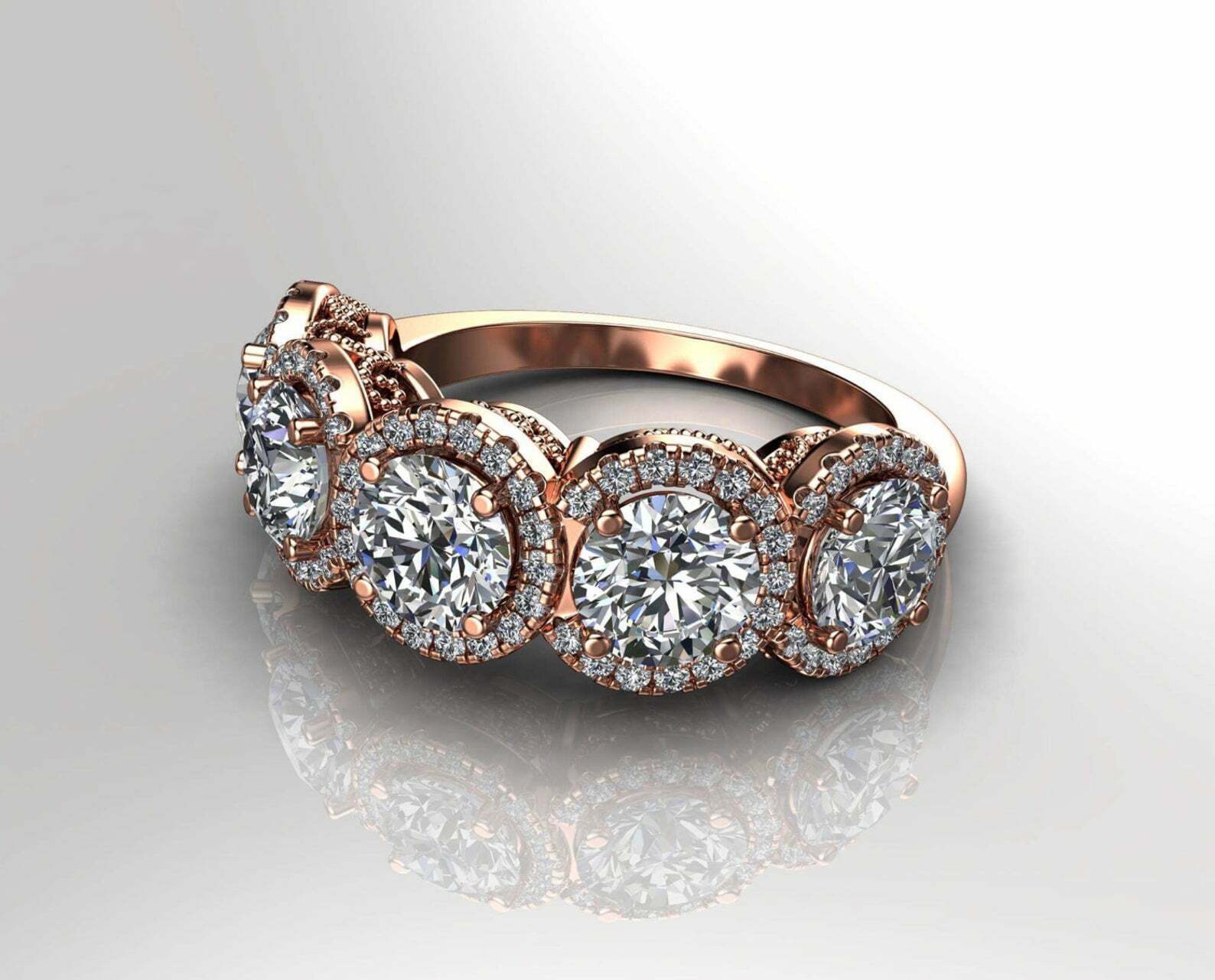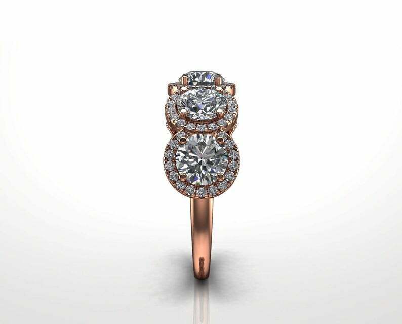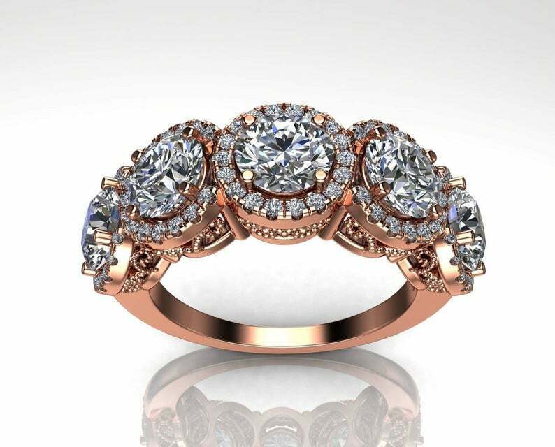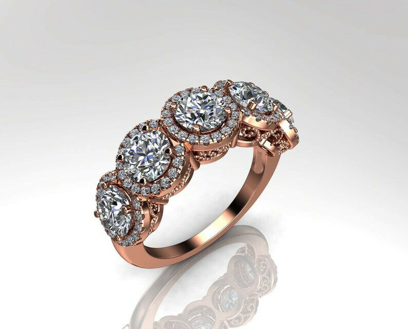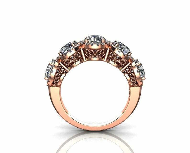 2.9ct Round Cut Diamond Wedding Band Halo Vintage Filigree 14k Rose Gold Finish