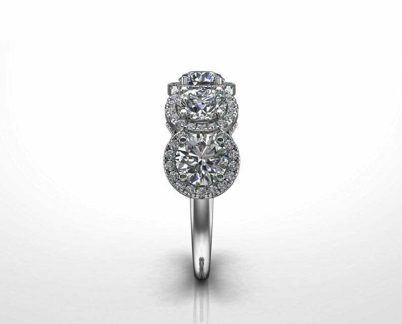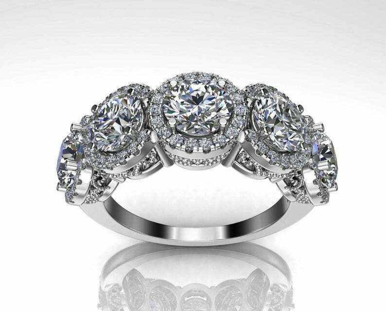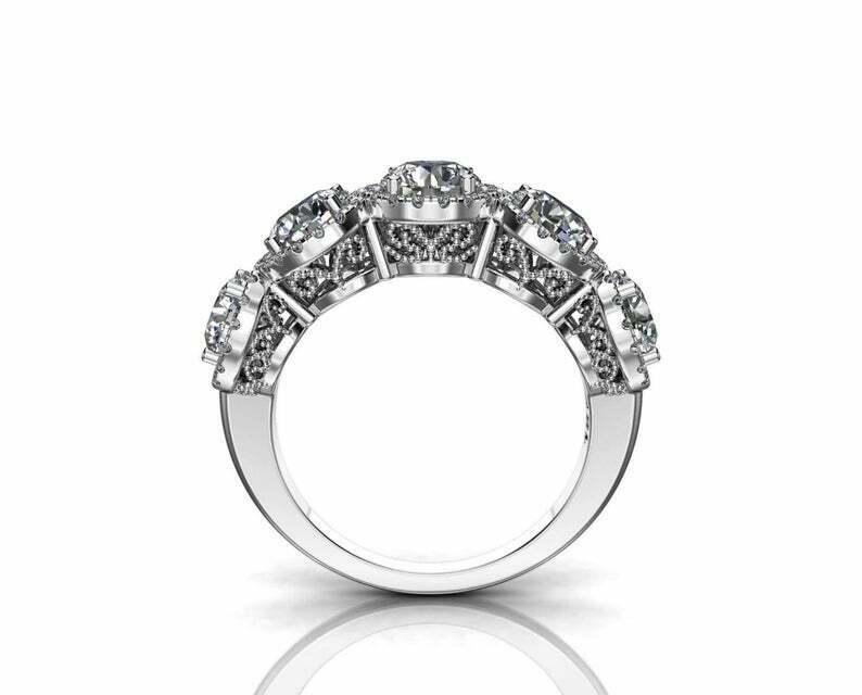 2.9ct Round Cut Diamond Wedding Band Halo Vintage Filigree 14k White Gold Finish