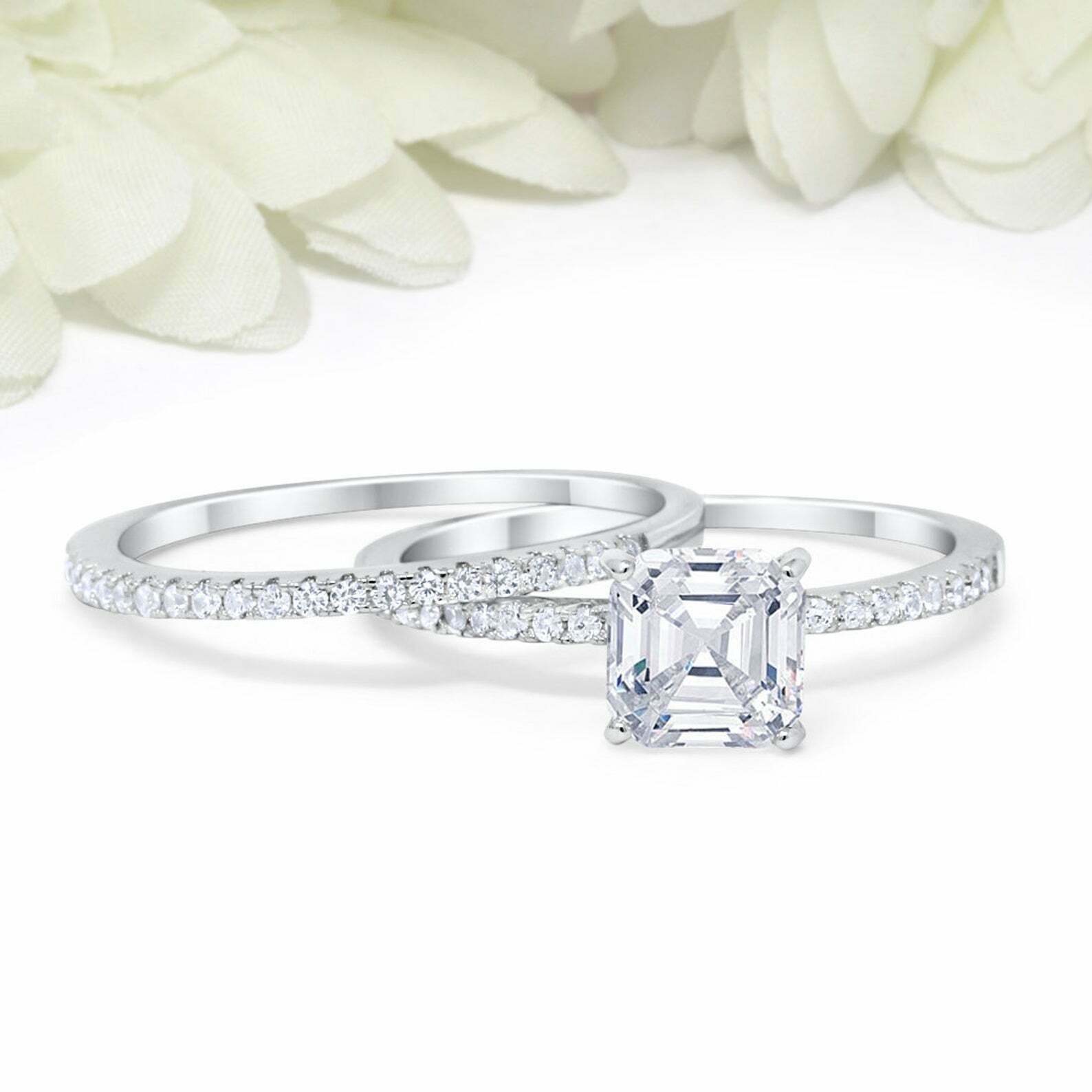 2ct Asscher Cut Diamond Bridal Set Band Engagement Ring 14k White Gold Finish