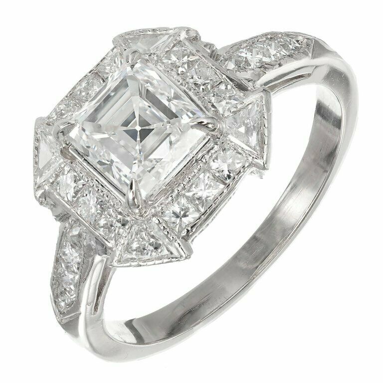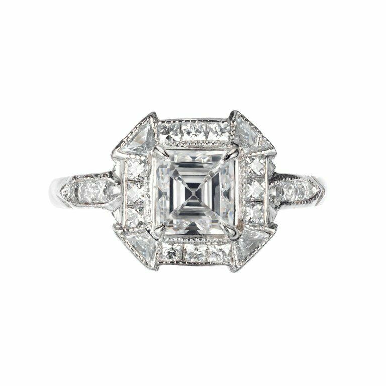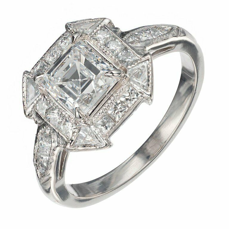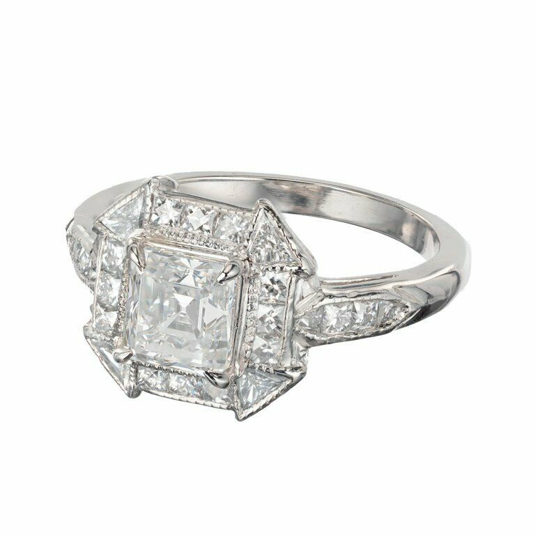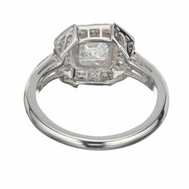 2ct Asscher Cut Diamond Halo Art Deco Accent Engagement Ring 14k White Gold Over