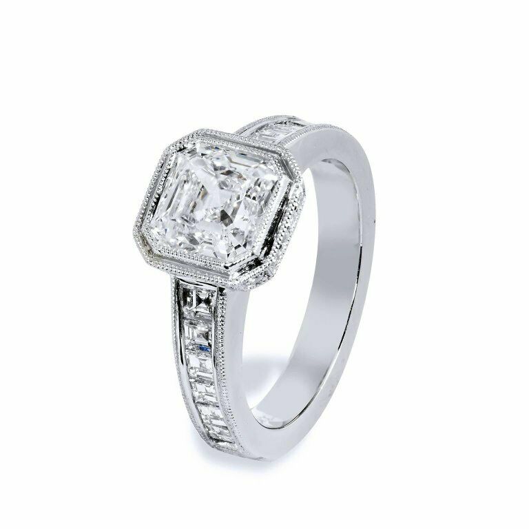 2ct Asscher Cut Diamond Hidden Halo Milgrain Engagement Ring 14k White Gold Over