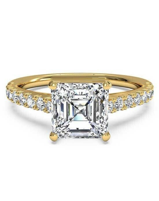 2Ct Asscher Cut Diamond Trendy Solitaire with Accent Ring 14K Yellow Gold Finish