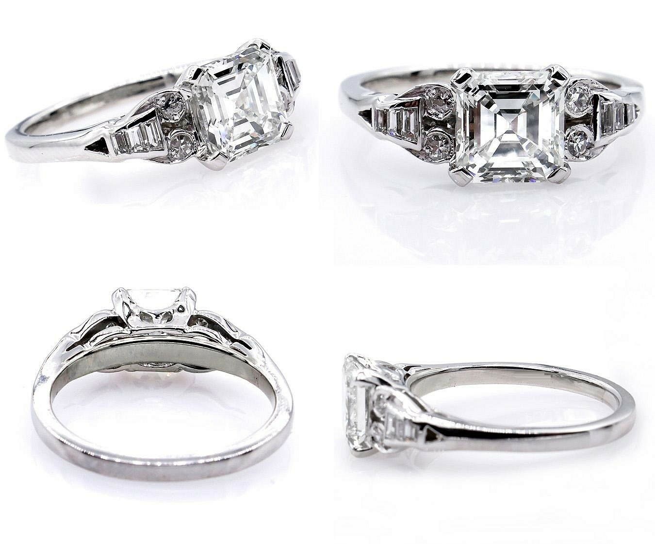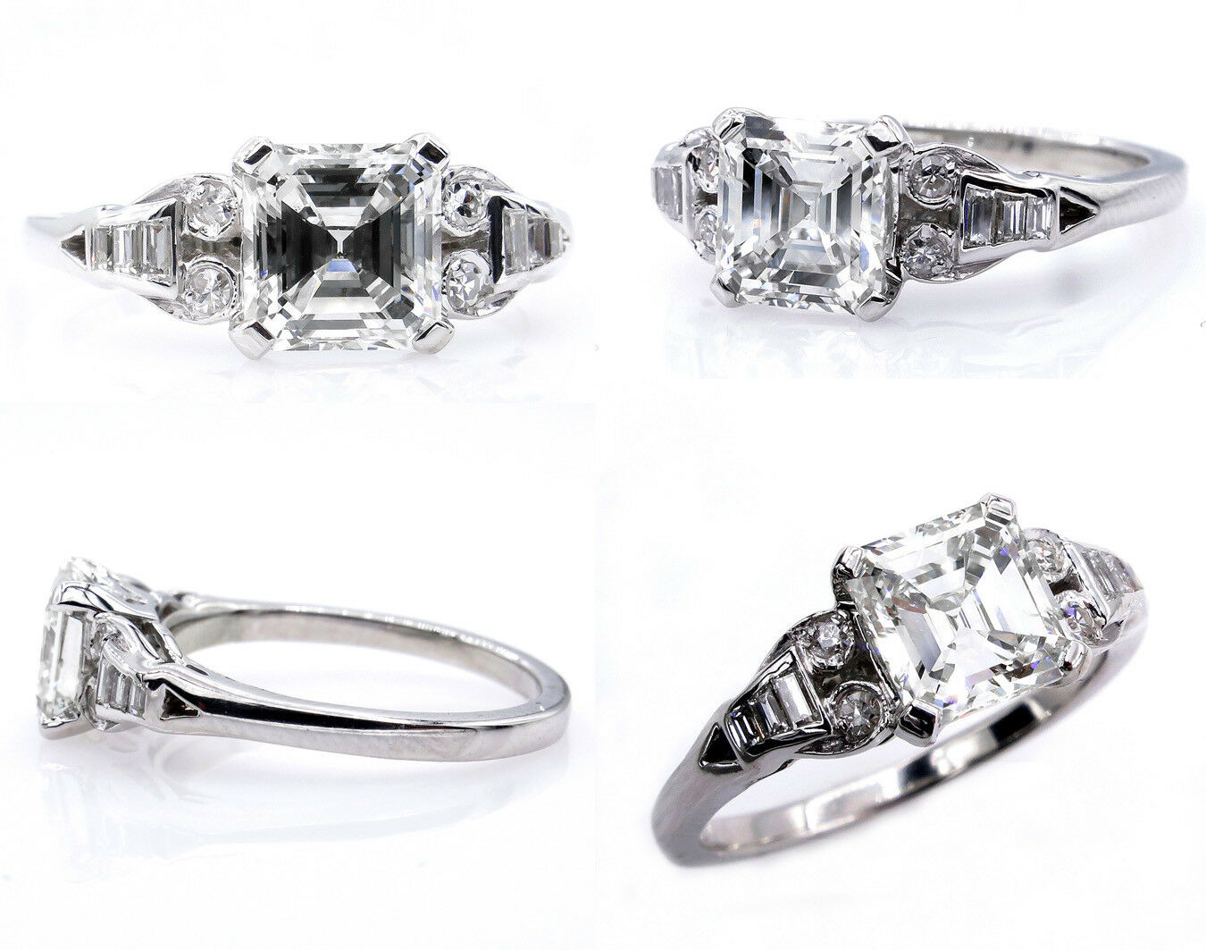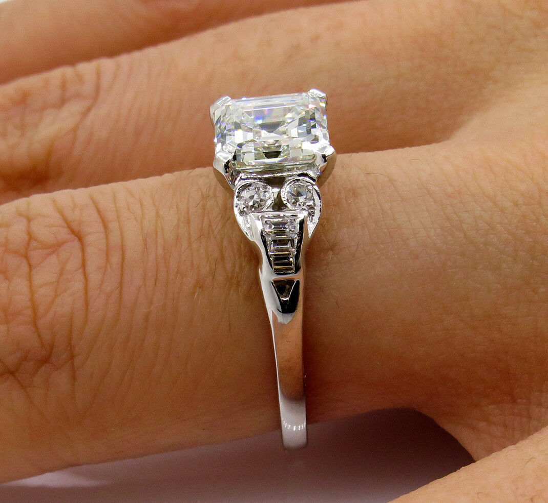 2Ct Asscher Cut VVS1/D Diamond Vintage Engagement Ring 14K White Gold Finish