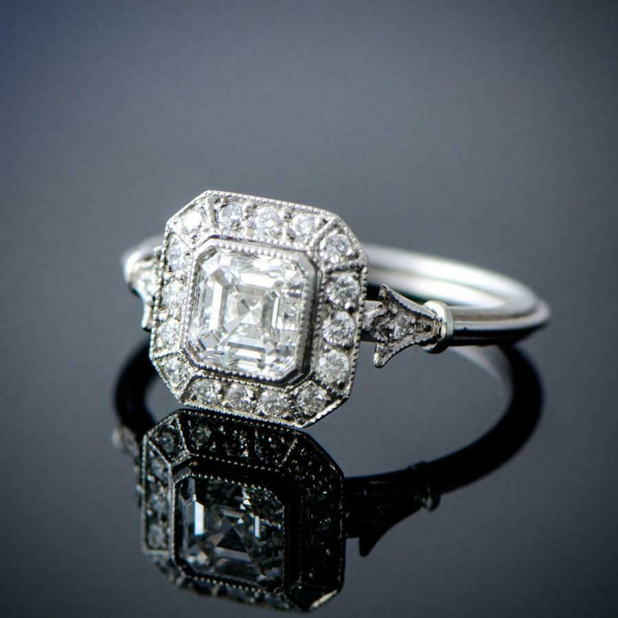 2Ct Asscher Cut VVS1D Diamond Vintage Halo Engagement Ring 14K White Gold Finish