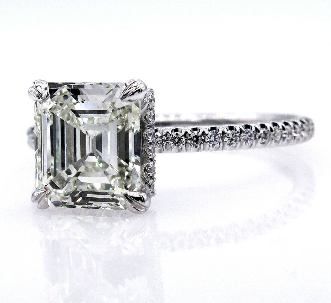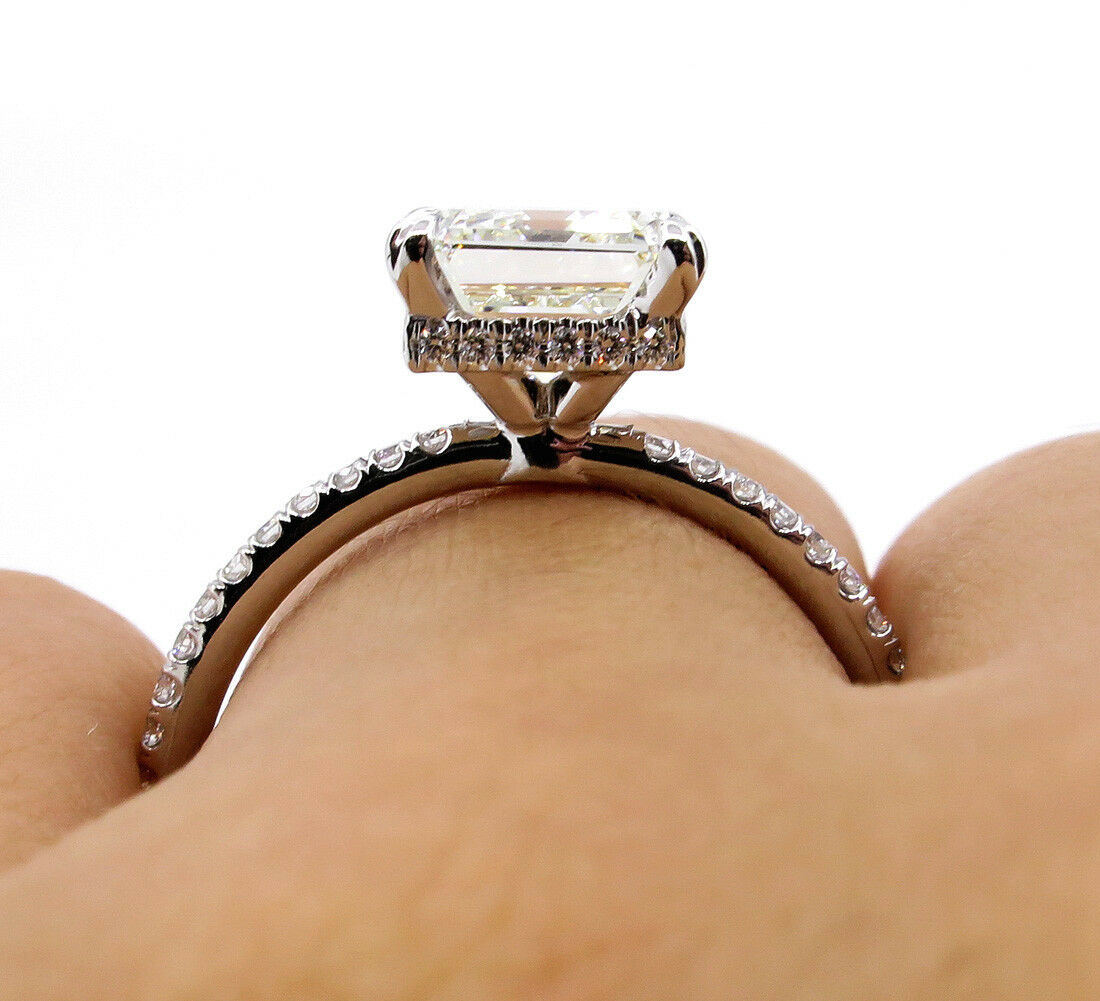 2Ct Asscher Diamond Hidden Halo Solitaire Engagement Ring 14K White Gold Finish