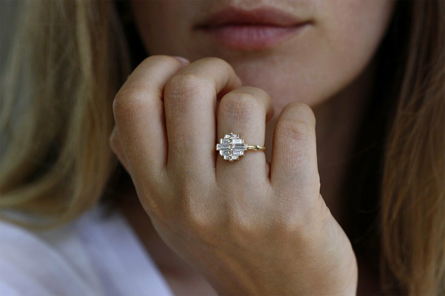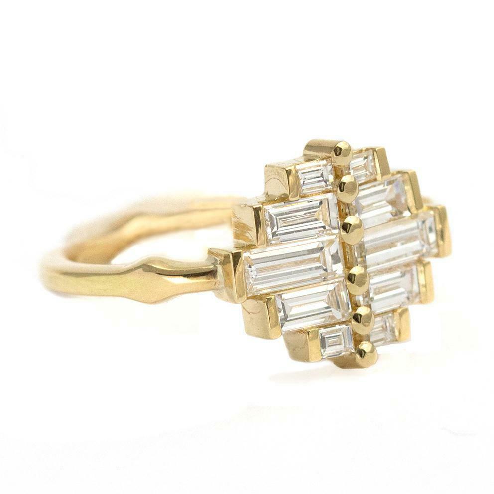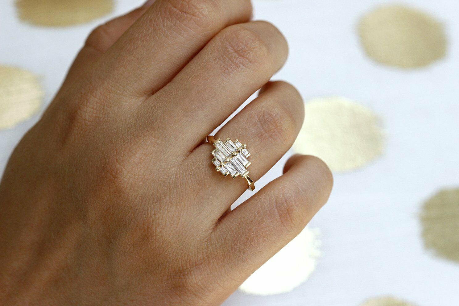 2ct Baguette Cut Diamond Engagement Ring 14k Yellow Gold Finish Cluster Art Deco