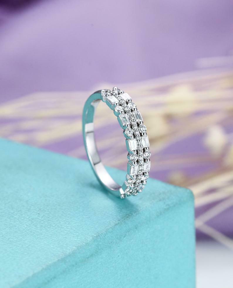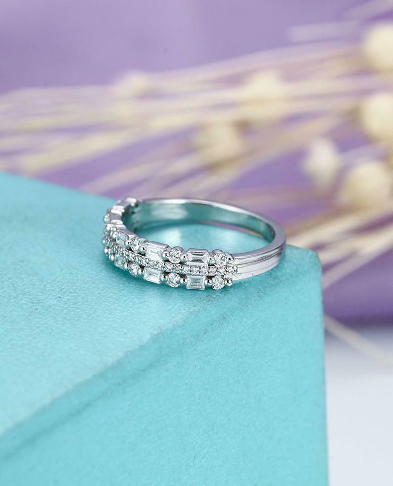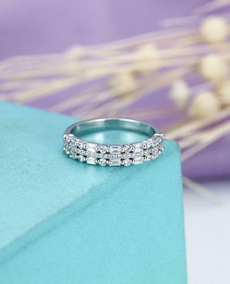 2ct Baguette Cut Diamond Wedding Band 3 Row Half Eternity 14k White Gold Finish