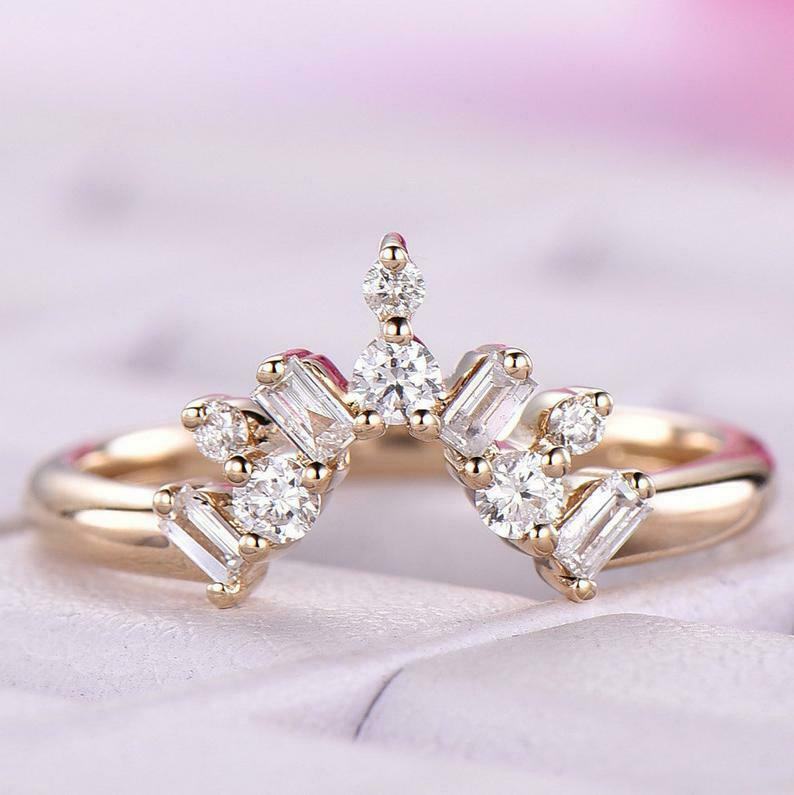 2ct Baguette Cut Diamond Wedding Band Curved Chevron Stackable 14k RoseGold Over