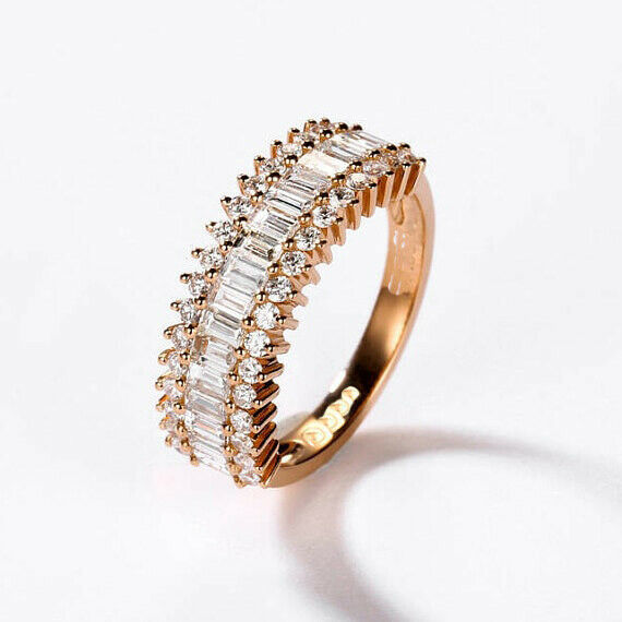 2ct Baguette Cut Diamond Wedding Band Vintage Half Eternity 14k Rose Gold Finish