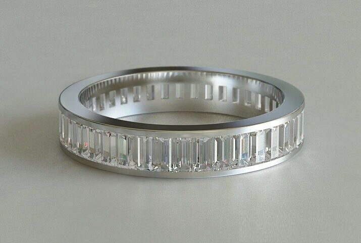 2ct Baguette Cut Diamond Wedding Ring Band Channel Set 14k White Gold Finish