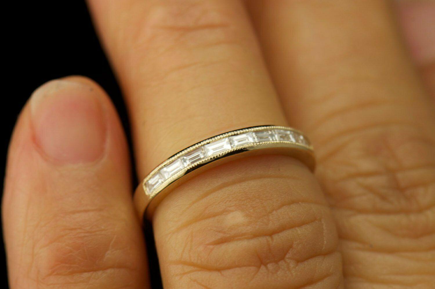 2Ct Baguette Cut DVVS1 Diamond Half Eternity Wedding Band 14K Yellow Gold Finish