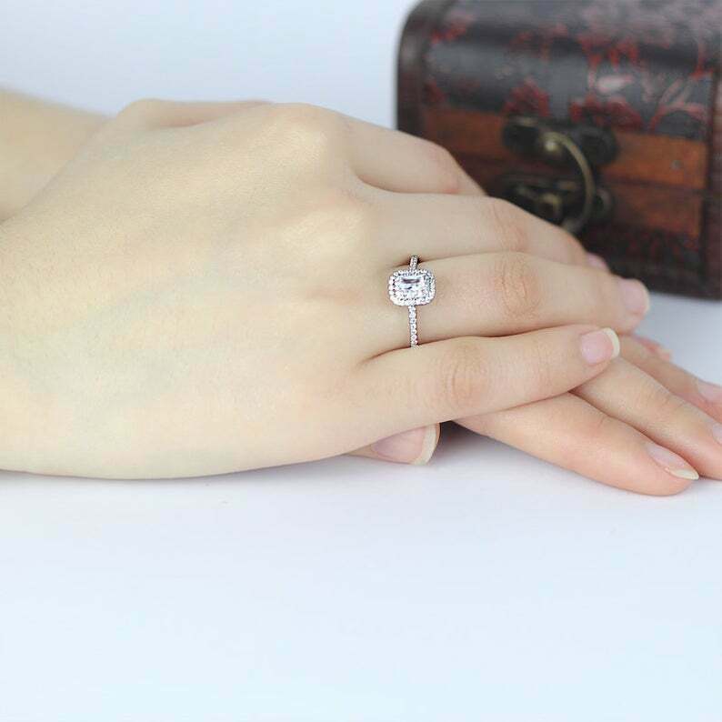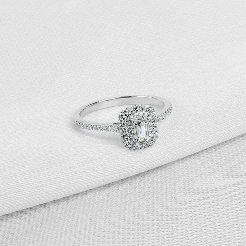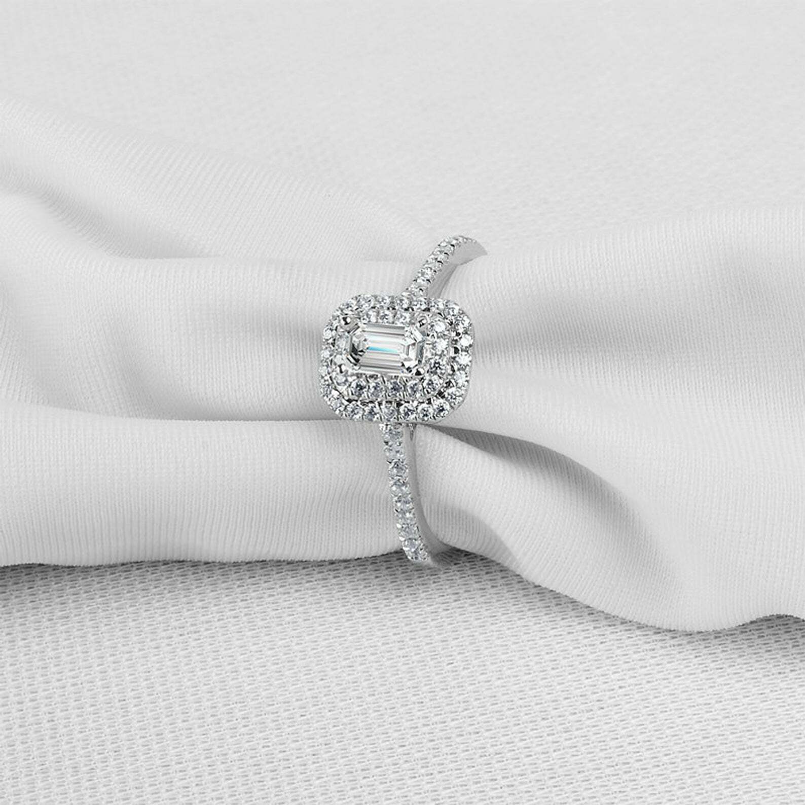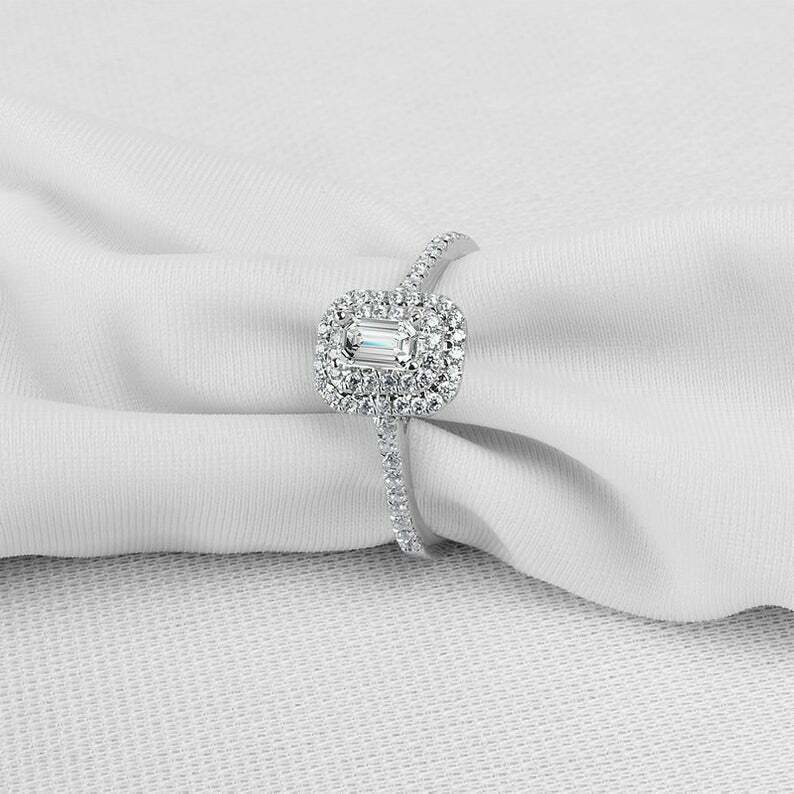 2ct Baguette Cut VVS1D Diamond Engagement Ring Double Halo 14k White Gold Finish