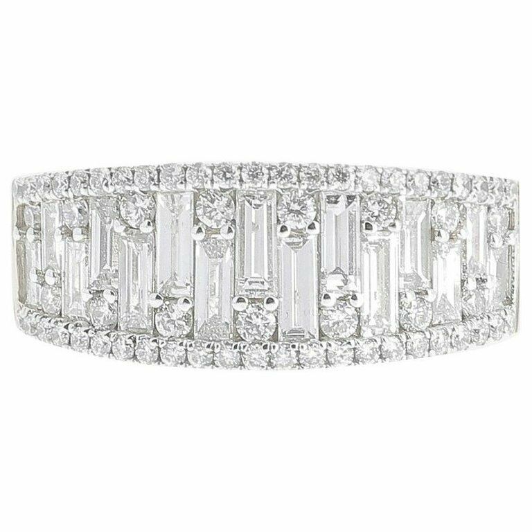 2ct Baguette & Round Cut Diamond Engagement Ring Cocktail 14k White Gold Finish