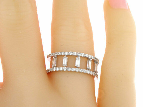 2Ct Baguette Round Cut Diamond Half Eternity Wedding Band 14K White Gold Finish