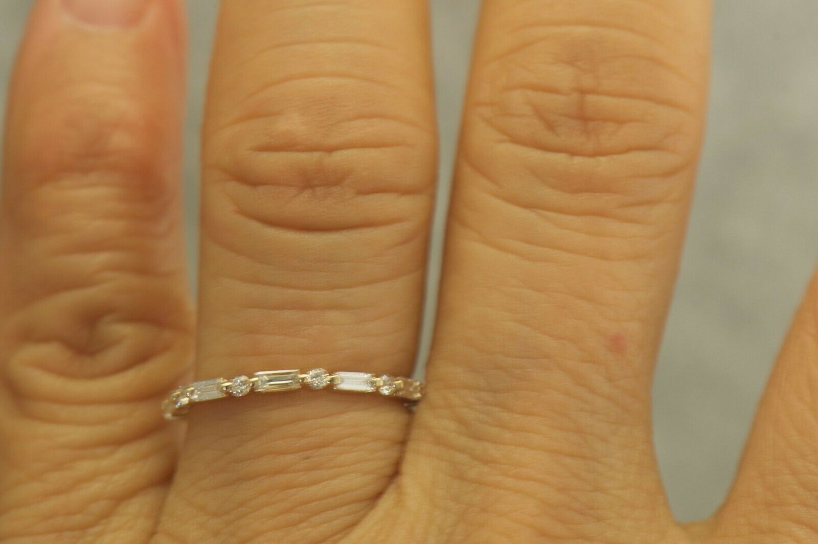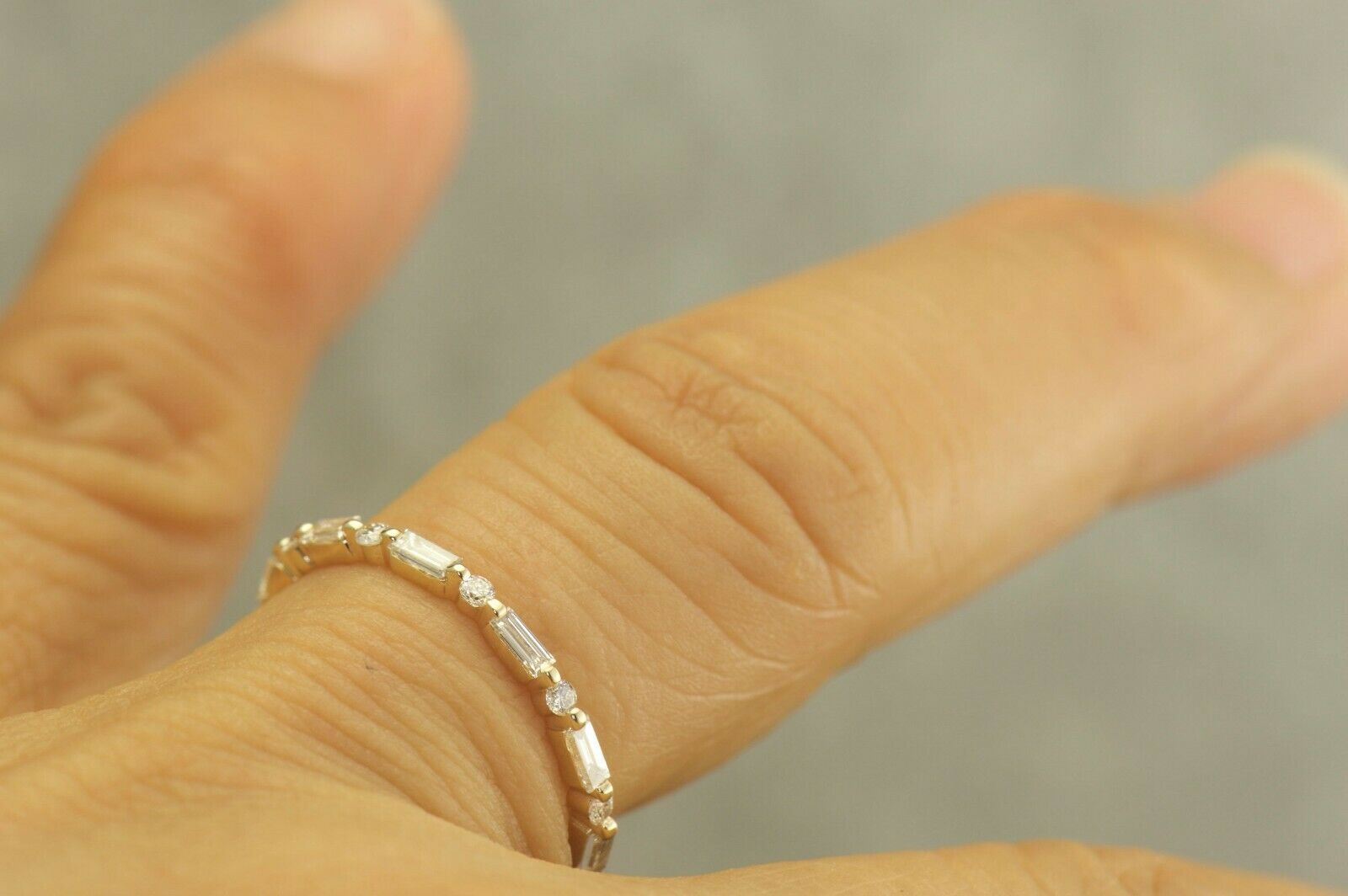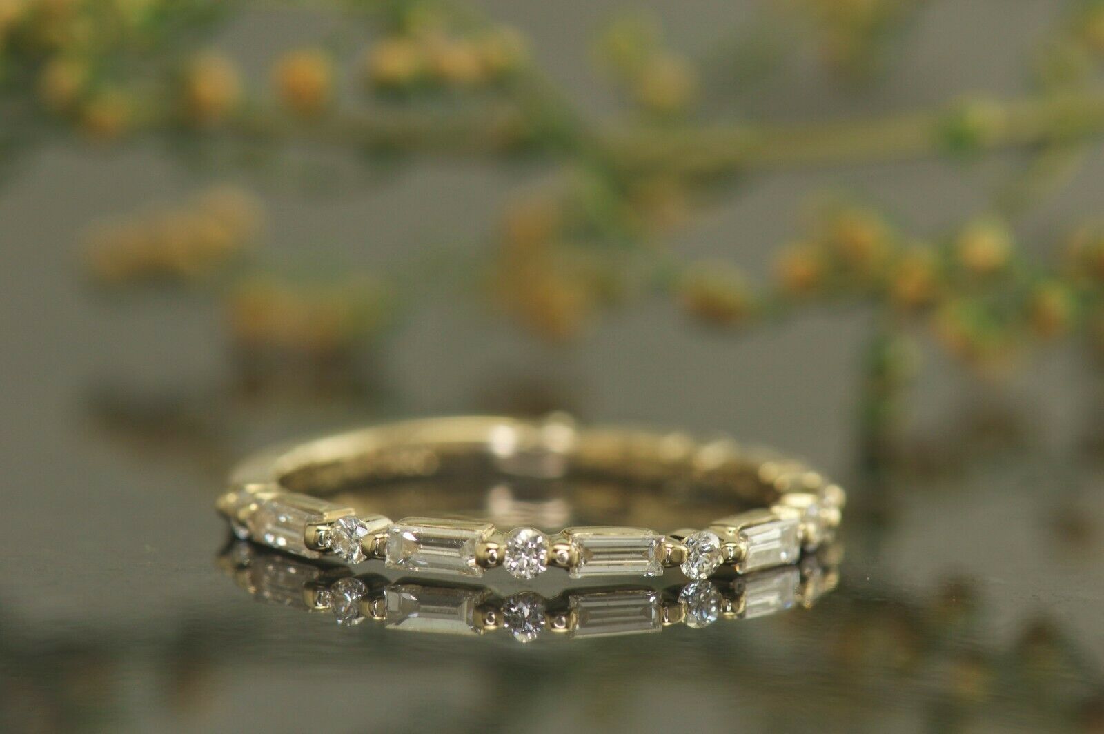 2Ct Baguette Round Diamond Petite Minimalist Wedding Band 14K Yellow Gold Finish