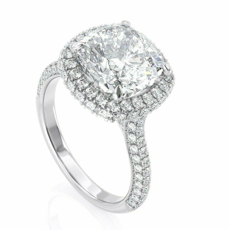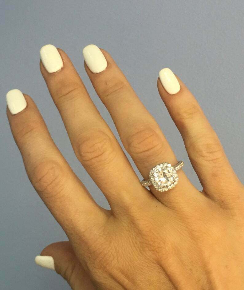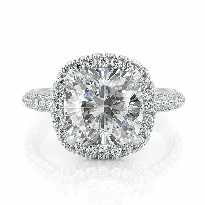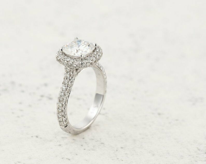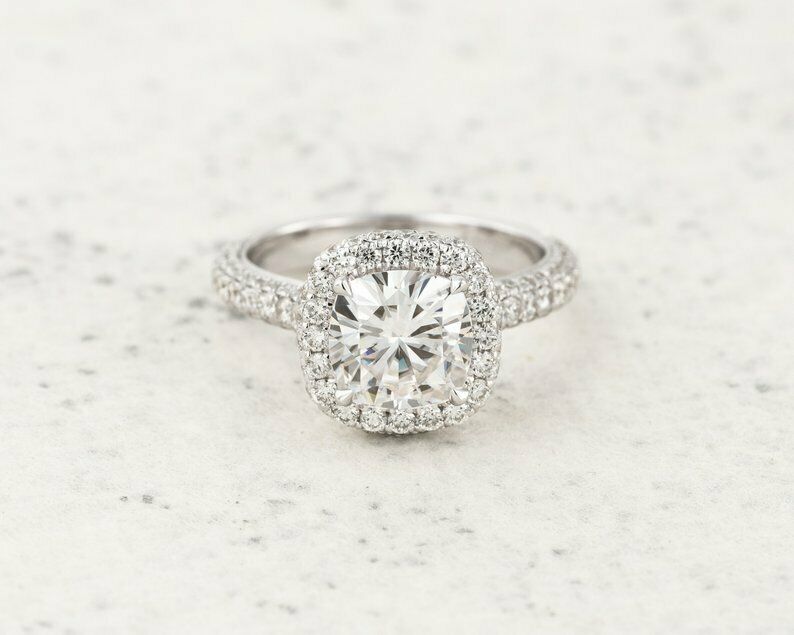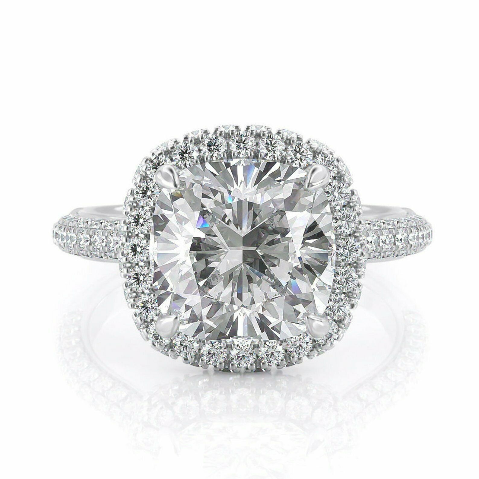 2ct Cushion Cut Diamond Accent Halo Solitaire Engagement Ring 14k WhiteGold Over