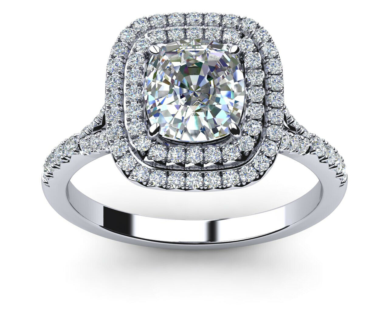 2ct Cushion Cut Diamond Engagement Ring 14k WhiteGold Over Double Halo Solitaire