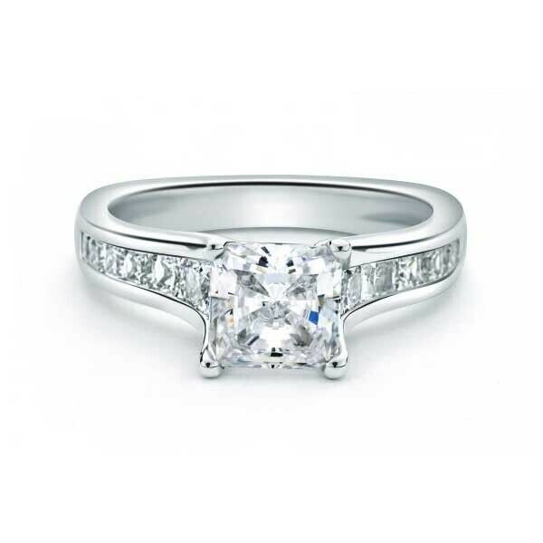 2ct Cushion Cut Diamond Engagement Ring Accents Solitaire 18k White Gold Finish