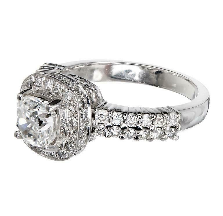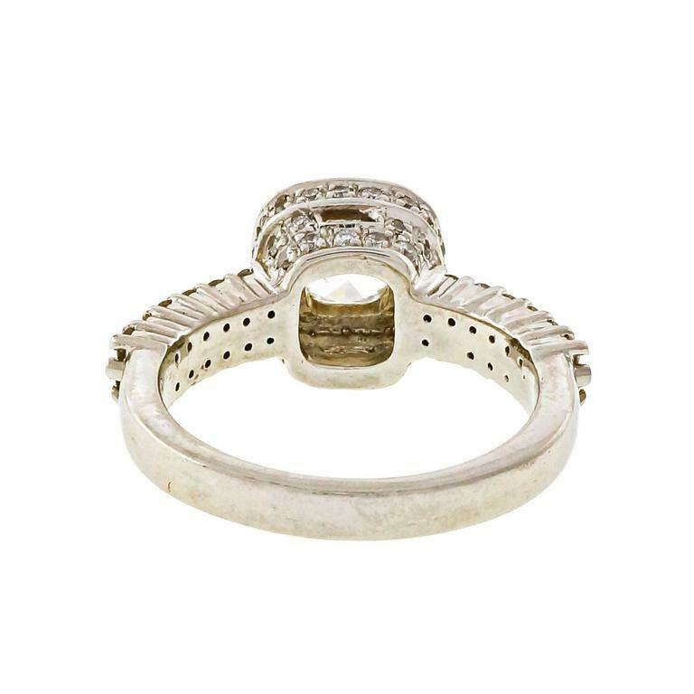2ct Cushion Cut Diamond Engagement Ring Halo Accent Solitaire 14k White Gold Over