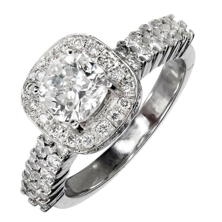 2ct Cushion Cut Diamond Engagement Ring Halo Accent Solitaire 14k WhiteGold Over