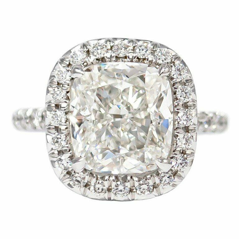 2ct Cushion Cut Diamond Engagement Ring Halo Round Accents 14k White Gold Finish