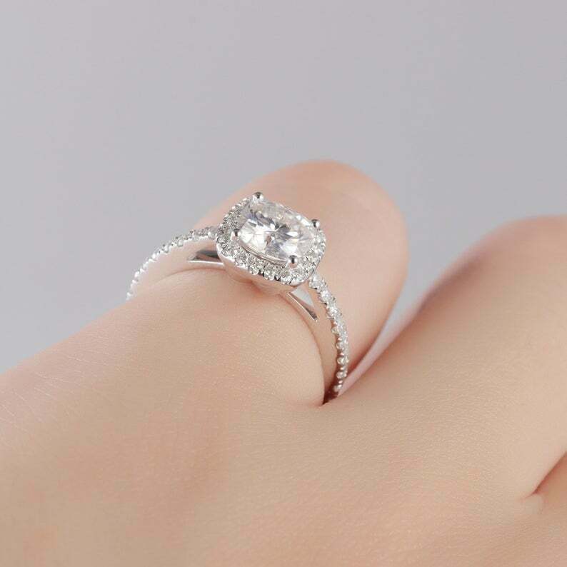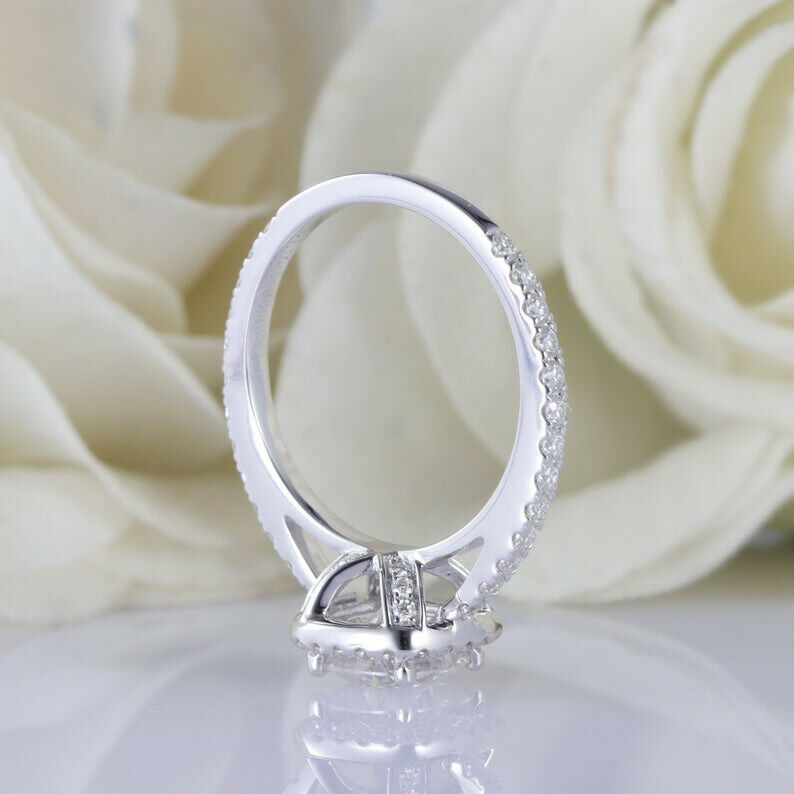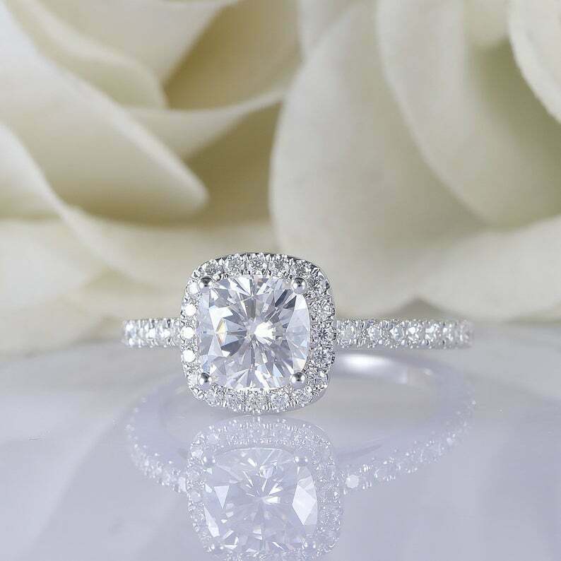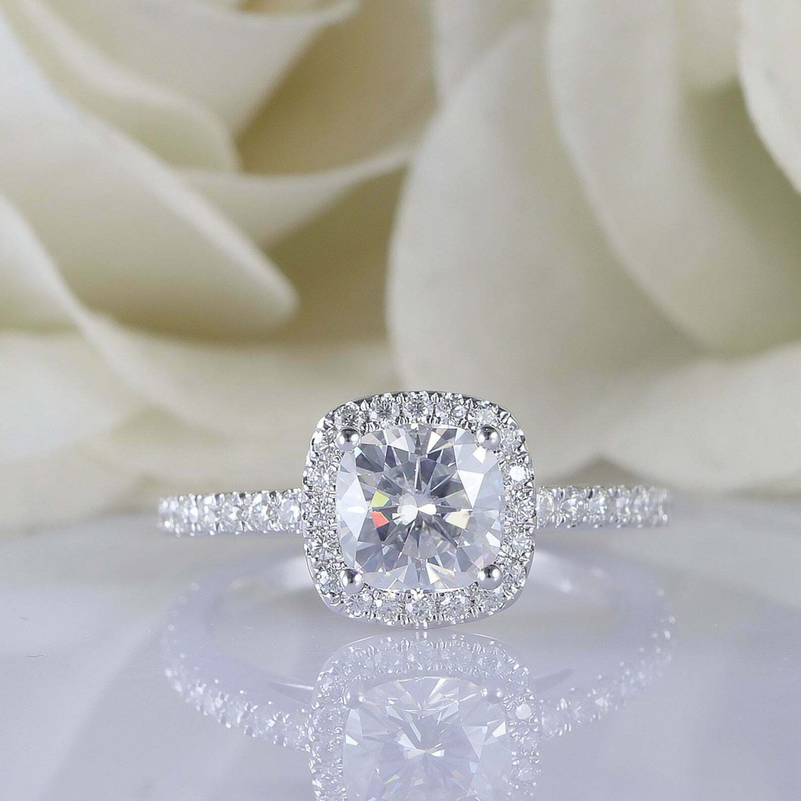 2ct Cushion Cut Diamond Engagement Ring Round Accents Halo 14k White Gold Finish