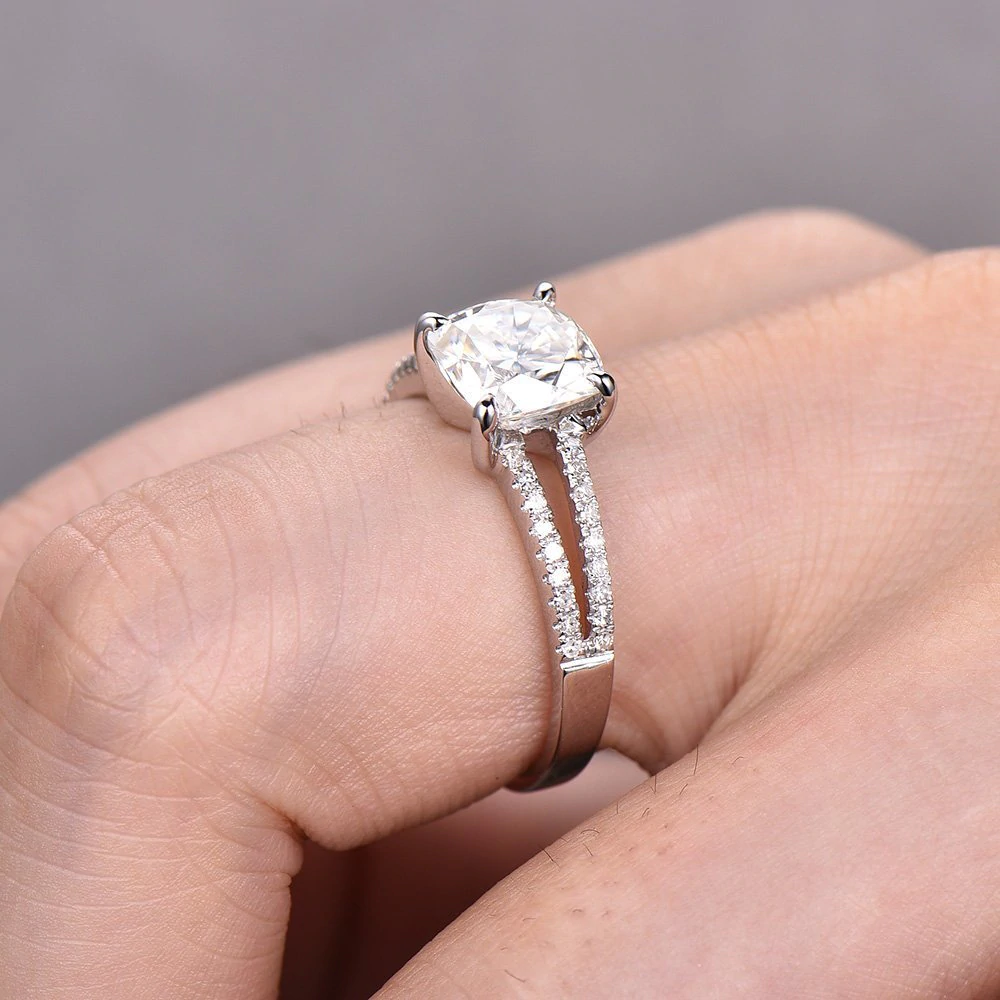 2ct Cushion Cut Diamond Engagement Ring Split Band Solitaire 14k White Gold Over