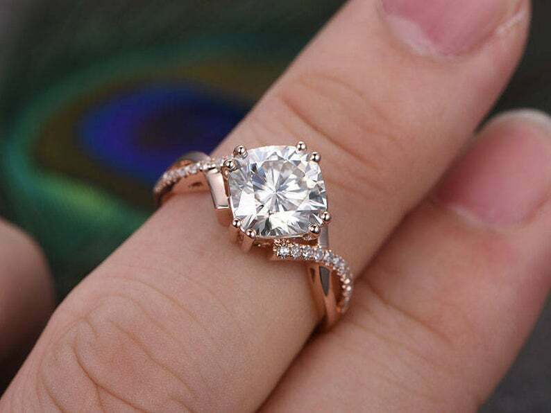 2ct Cushion Cut Diamond Engagement Ring Twist Split Shank 14k Rose Gold Finish