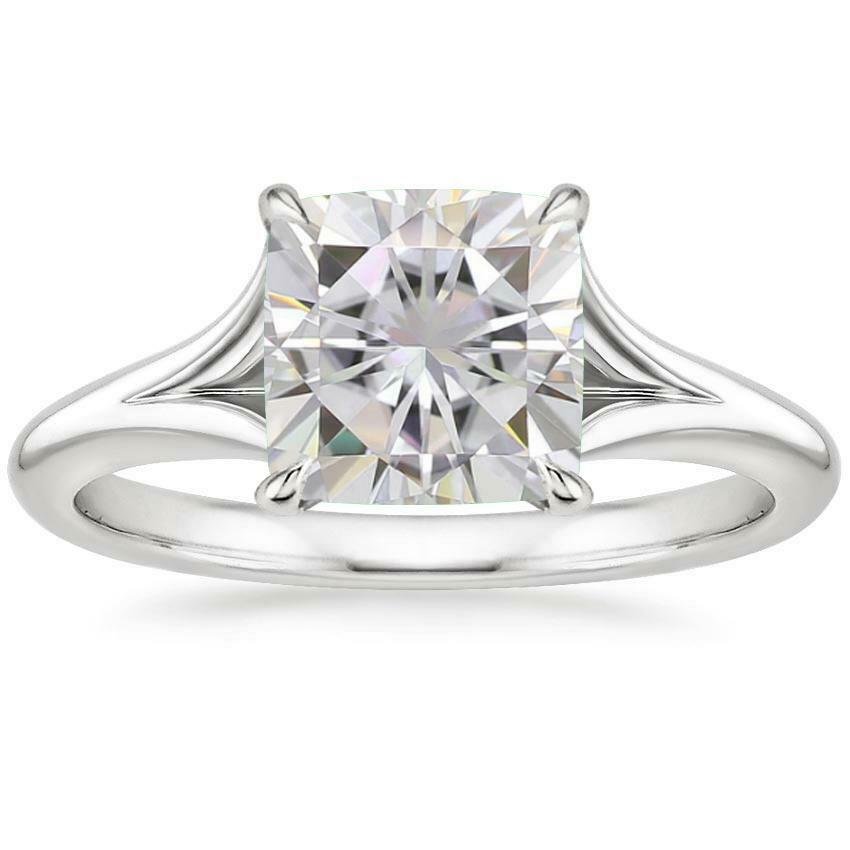 2ct Cushion Cut Diamond Solitaire Ring 14k White Gold Finish Twist Split Shank