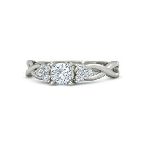 2Ct Cushion Cut Diamond Split Shank Petite Engagement Ring 14K White Gold Finish