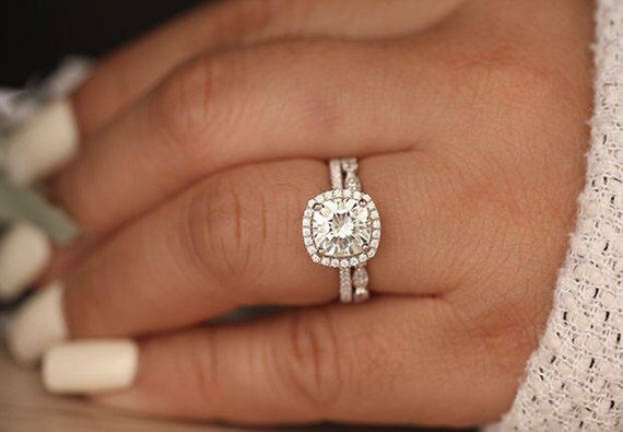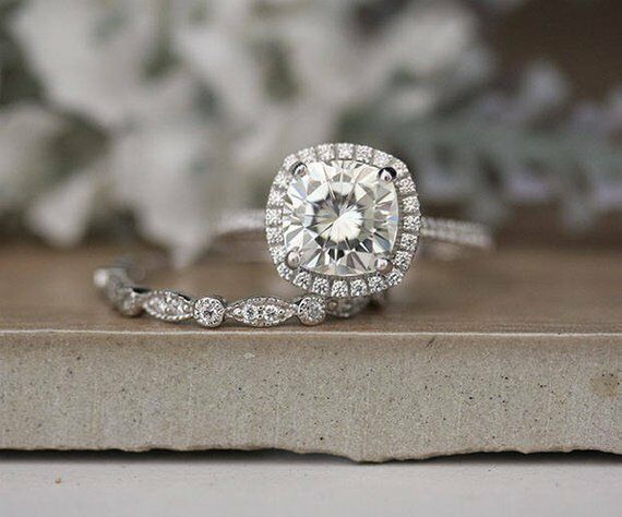 2ct Cushion Cut Diamond Vintage Bridal Set Engagement Ring 14k White Gold Finish
