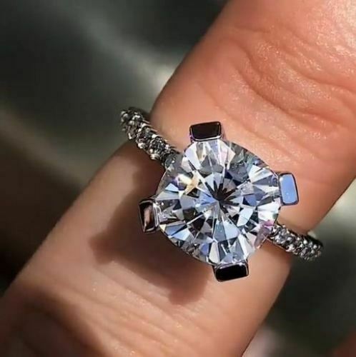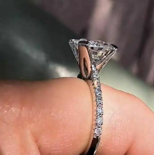 2Ct Cushion Cut DVVS1 Diamond Round Accents Solitaire Ring 14K White Gold Finish