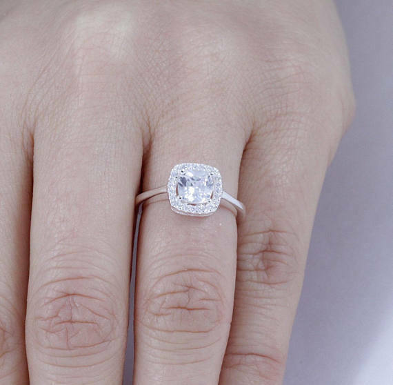 2Ct Cushion Cut DVVS1 Diamond Stylish Halo Engagement Ring 14K White Gold Finish
