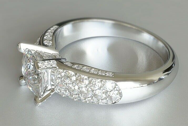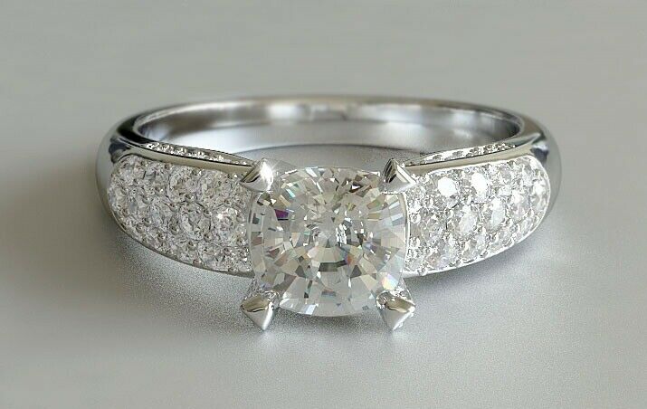 2ct Cushion Diamond Engagement Ring Solitaire Studded Accent 14k White Gold Over